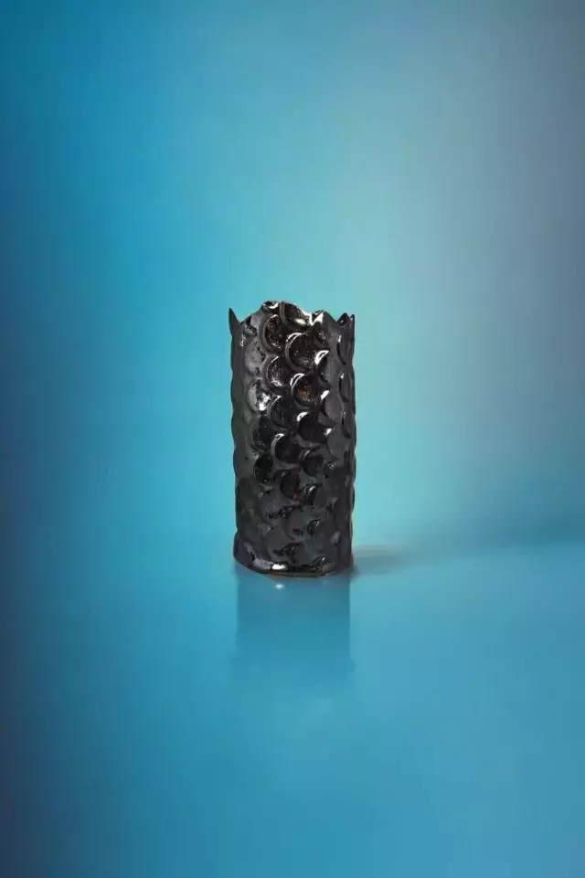Apresentamos o vaso metálico escamas, uma peça única e contemporânea que combina design inovador com uma textura marcante. Perfeito para adicionar um toque de modernidade e sofisticação ao seu espaço, este vaso se destaca pela sua forma cilíndrica e padrão de escamas em relevo.